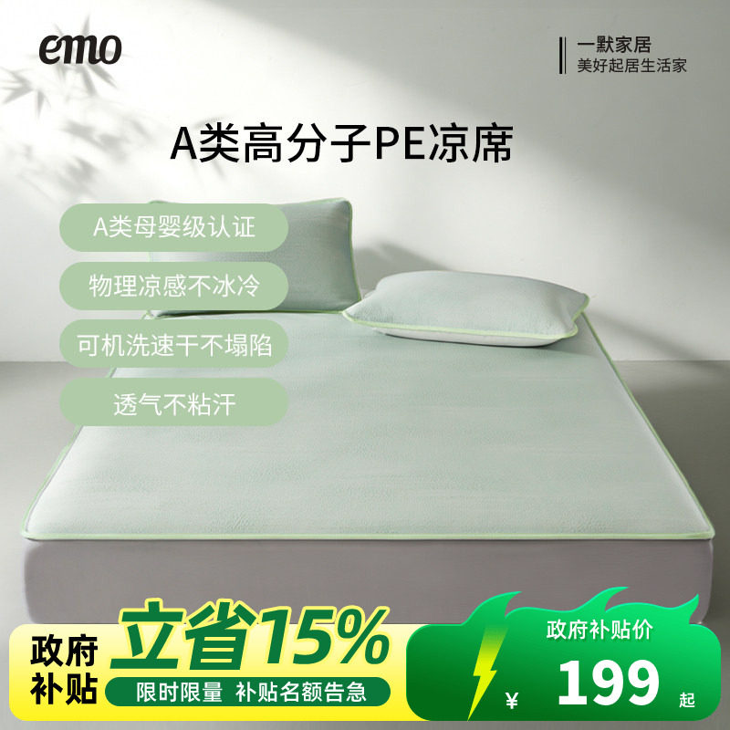 一默凉席夏季凉感席a类PE凉席透气空调席家用可水洗软席子床笠款