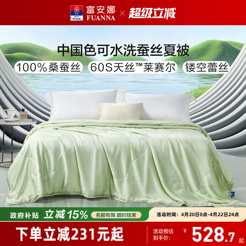 富安娜被子可水洗桑蚕丝被芯夏凉被60S天丝莱赛尔夏季薄款空调被