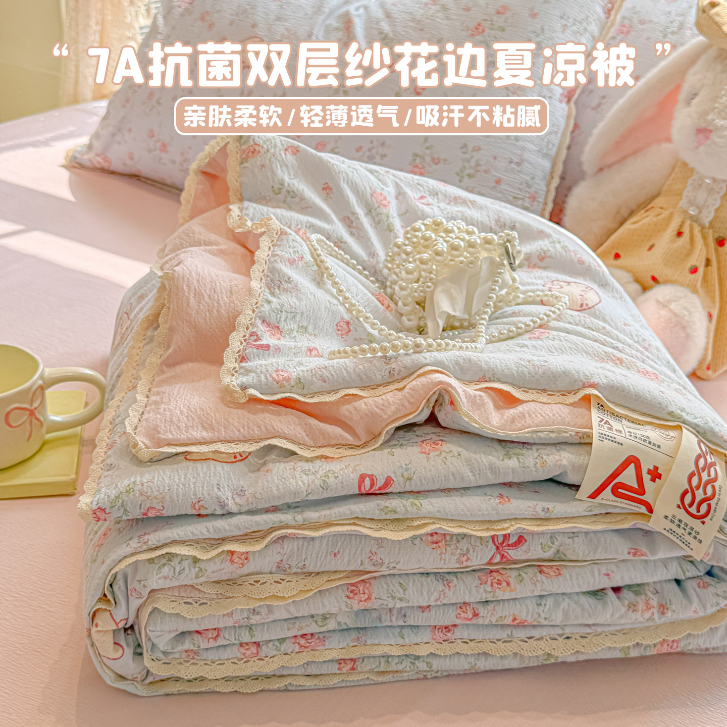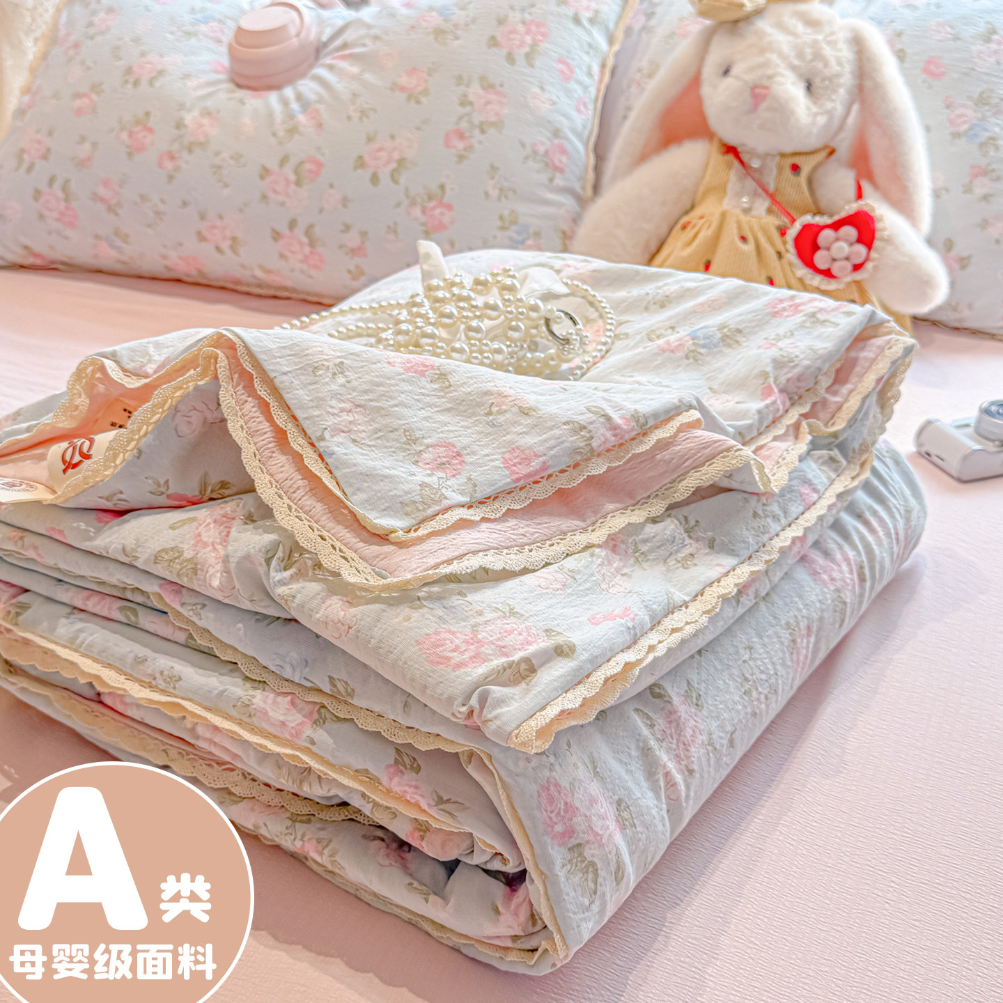 法式小碎花全棉双层纱春秋2米田园风双人夏季薄夏被空调被可机洗