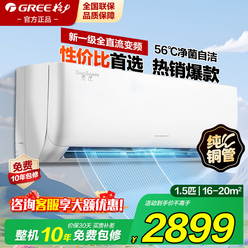 格力(GREE)空调挂机1.5匹一级能效国家补贴大1匹天仪pro节能省电变频冷暖除湿家用卧室壁挂式支持以旧换新 1.5匹 【就近发货】