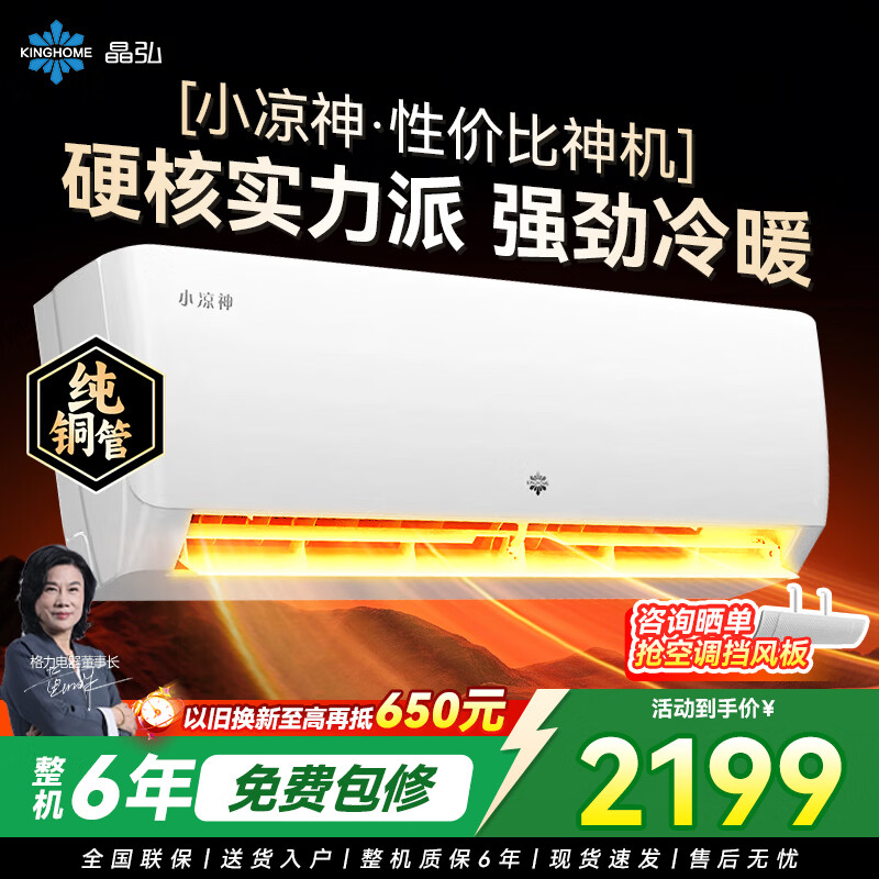 格力出品 晶弘空调 小凉神 1.5匹 新一级能效变频 纯铜管卧室省电挂机 大1匹 小凉神【省钱品质两手抓】