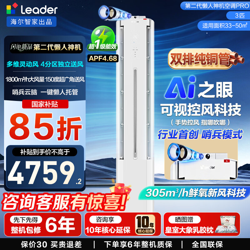 海尔(Haier)空调柜机大3匹懒人神机新风人感防直吹双排铜管超一级能效统帅立式客厅柜机空调冷暖国家补贴15% 懒人神机 pro 3匹 AI之眼可视控风72LX2