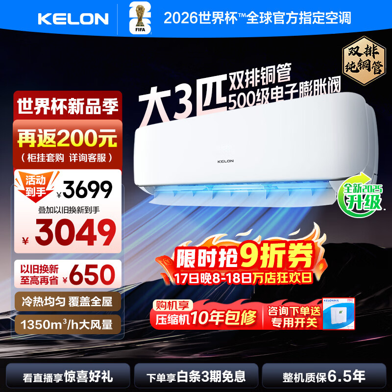 科龙(KELON)空调3匹挂机【国家补贴】新一级能效节能 大风量 变频舒适 急速冷暖 内外机自清洁 壁挂式 客厅 【国家补贴】一级能效 +多仓速发+免费安装 大3匹