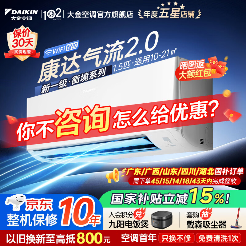 大金空调(DAIKIN)新一级能效 衡境系列 康达智控变频空调 2025新款小零境 挂机 以旧换新 国家补贴 衡境 1.5匹 ATXE135ZC-W1白色