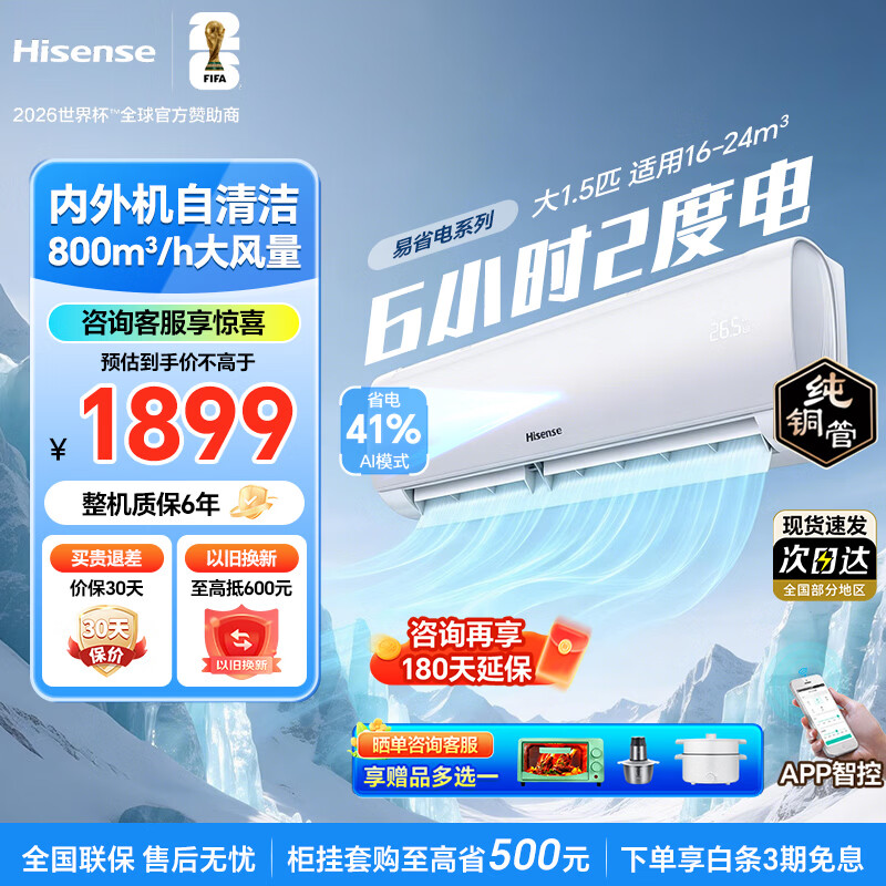 海信空调易省电【包安装】变频冷暖自清洁AI省电大风量静音防直吹壁挂式空调挂机pro国家补贴以旧换新 易省电 大1.5匹 15s速凉爽+大风量防直吹