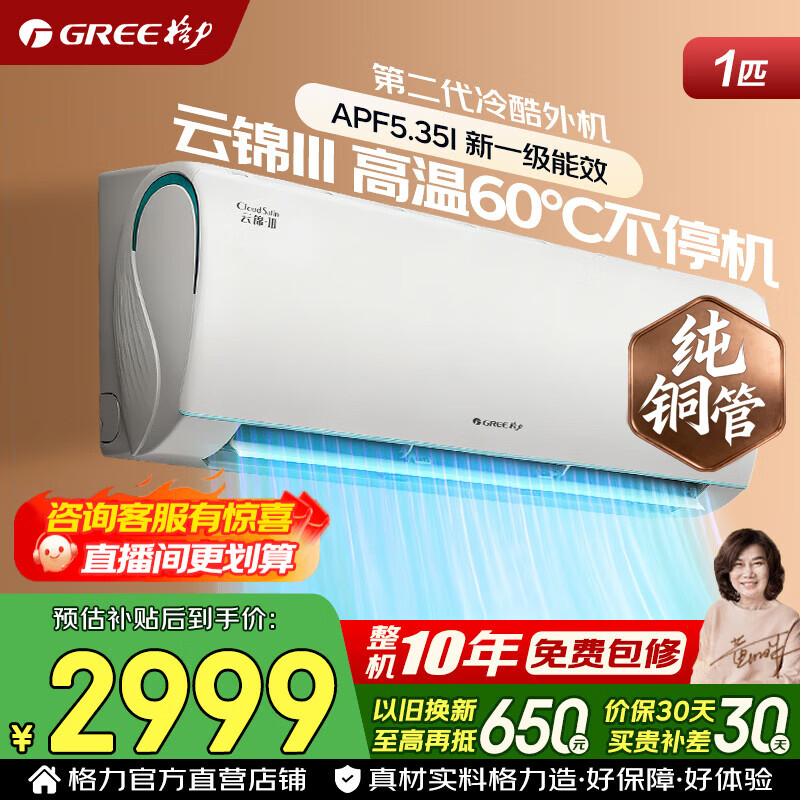 格力空调 云锦三代 1.5匹 新一级能效 变频冷暖 纯铜管 家用节能省电 壁挂式空调挂机 家电国家补贴 大1匹 云锦三代 性价比爆款 纯铜管【 冷酷外机】