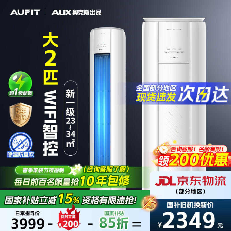 AUFIT空调奥克斯出品大2匹/3匹新一级能效柜机变频冷暖除菌节能省电立式自清洁空调 大2匹一级wifi智控(23-34㎡) (客厅)一级柜省电12%