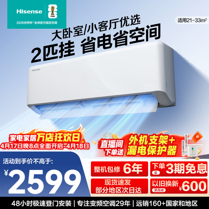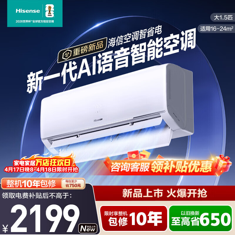 海信(Hisense)智省电空调A330大1.5匹挂机 世界杯定制 语音智控 AI省电柔风科技新一级能效以旧换新 换代首选 智省电 大1.5匹 一级能效【a330u】