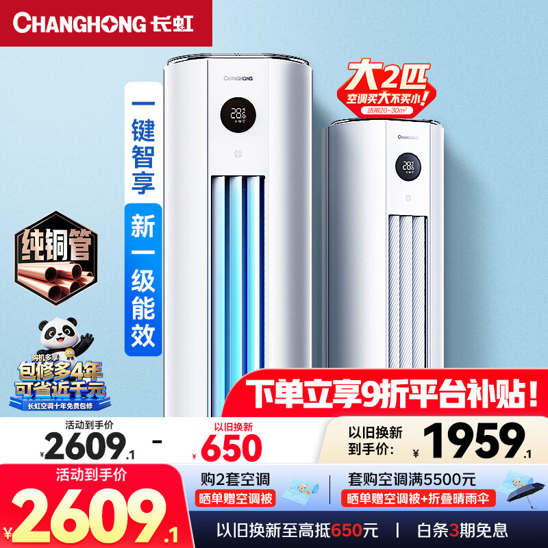 长虹空调 大2匹 新一级能效 冷暖变频省电立式家用客厅柜机空调KFR-51LW/ZDTTW2+R1(SE) 熊猫懒 大2匹