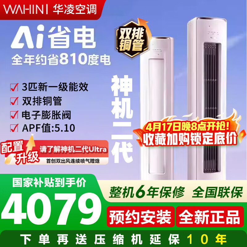 华凌空调3匹柜机神机二代【双排铜管】变频冷暖空调 大挂机超省电pro 新一级能效 以旧换新 神机二代 【双排铜管】 3匹 一级能效【柜机】