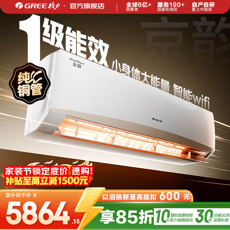 格力(GREE)空调 京韵 新能效 变频冷暖 高温自清洁 智能WIFI 家用壁挂式客厅挂机 家电以旧换新 京韵 新一级能效 3匹 大挂机