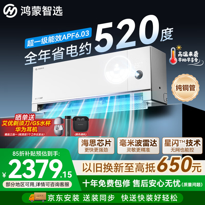 鸿蒙智选MEIPONT智能空调挂机1.5匹风神之眼 AI人感 冷暖变频 省电超一级能效【国家补贴】 风神之眼 AI人感 1.5匹 【国家补贴】