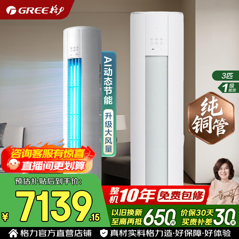 格力空调 云锦pro/悦省电升级款 3匹/2匹 新一级能效 变频冷暖 纯铜管 客厅立式空调柜机 家电国家补贴 3匹 云锦Pro AI节能省电 冷酷外机【悦省电升级款】
