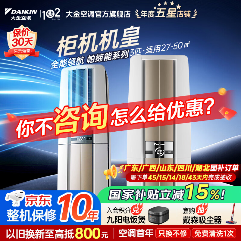 大金空调(DAIKIN) 官方旗舰 大3匹立式柜机 帕蒂能 帕缔能系列 强劲冷暖客厅省电以旧换新 国家补贴 帕缔能 大3匹 FVXF172WC-W白色 新国标能效