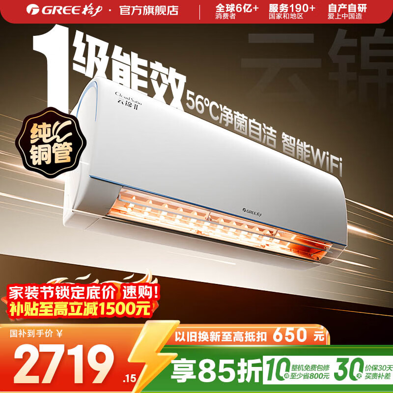 格力(GREE)空调 云锦畅销款 新一级能效 变频冷暖 高温自清洁 智能WIFI 壁挂式空调 家电国家补贴 以旧换新 云锦II 新一级能效 1.5匹
