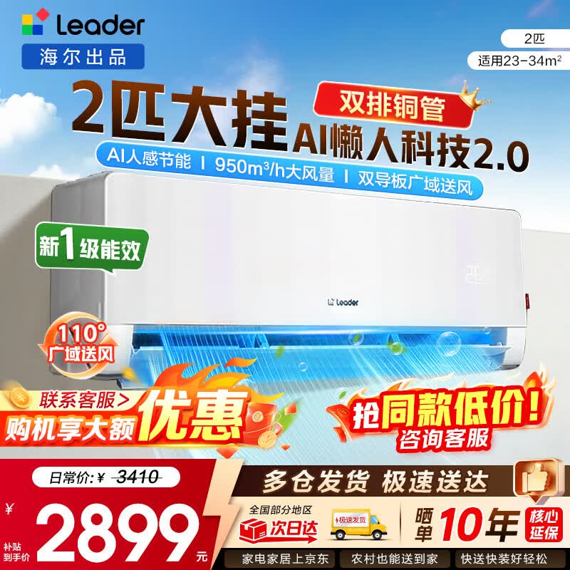 海尔空调出品统帅1.5匹挂机空调新一级能效变频冷暖壁挂式空调Leαder 统帅 2匹 【懒人科技2.0】人感防直吹+双AI智能省电