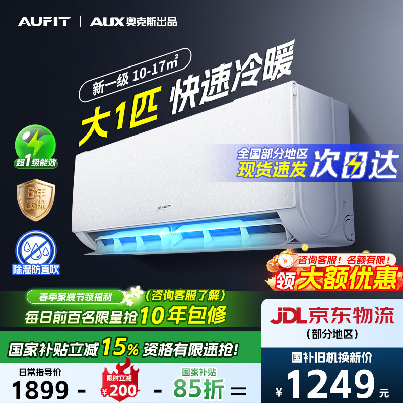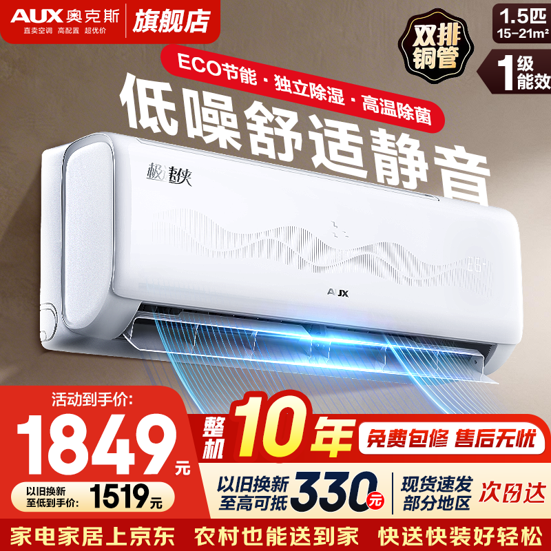 奥克斯(AUX)大1.5匹空调挂机大1匹省电侠Pro新一级能效变频冷暖 挂式卧室 铜管空调 以旧换新 1.5匹一级能效极速侠 性价比王者