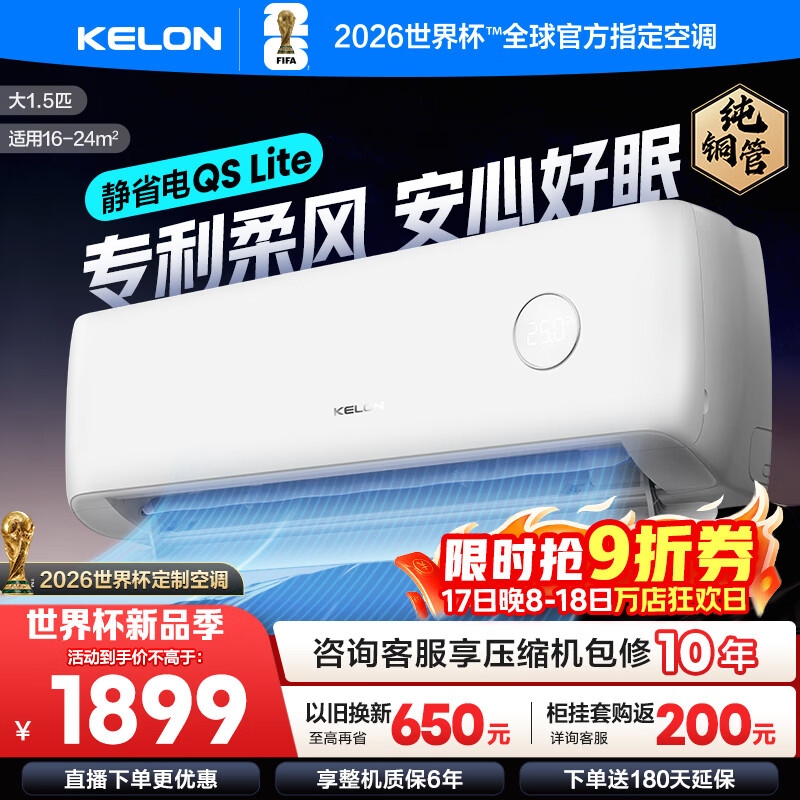 科龙(KELON)空调 海信出品 询单优惠 静省电Lite 大1/1.5匹新一级能效变频冷暖16分贝轻音好眠AI高效以旧换新 大1.5匹 一级能效 静省电QS Lite