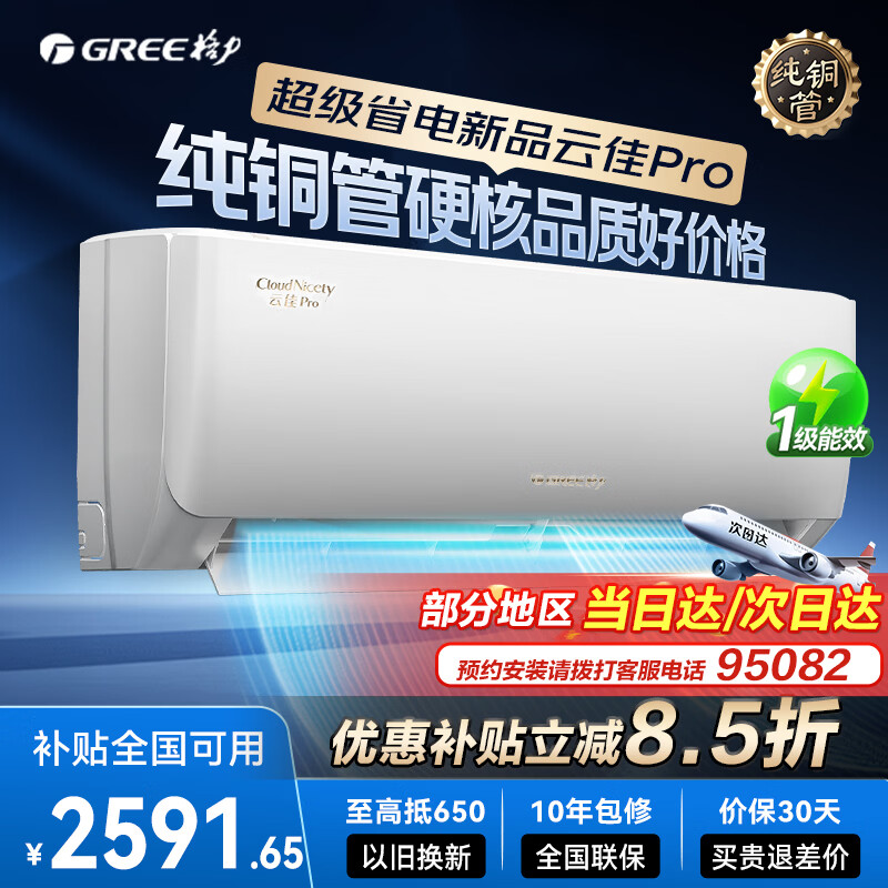 格力空调 云佳Pro/云佳【超级省电】一级能效变频冷暖 纯铜管自清洁 卧室挂机壁挂式空调 家电补贴 云佳Pro 1.5匹 【省电大风量】