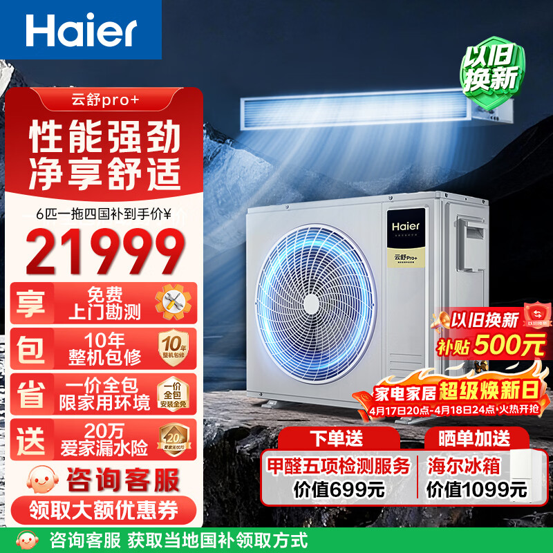 海尔中央空调5匹一拖三拖四拖五家用客厅云舒Pro多联机官方旗舰店
