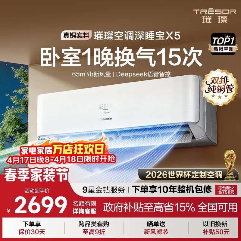 海信璀璨大力神新风空调深睡宝X5大1.5匹一级能效变频卧室家用挂机【世界杯定制空调】 深睡宝 KFR-35GW/X5E1-1
