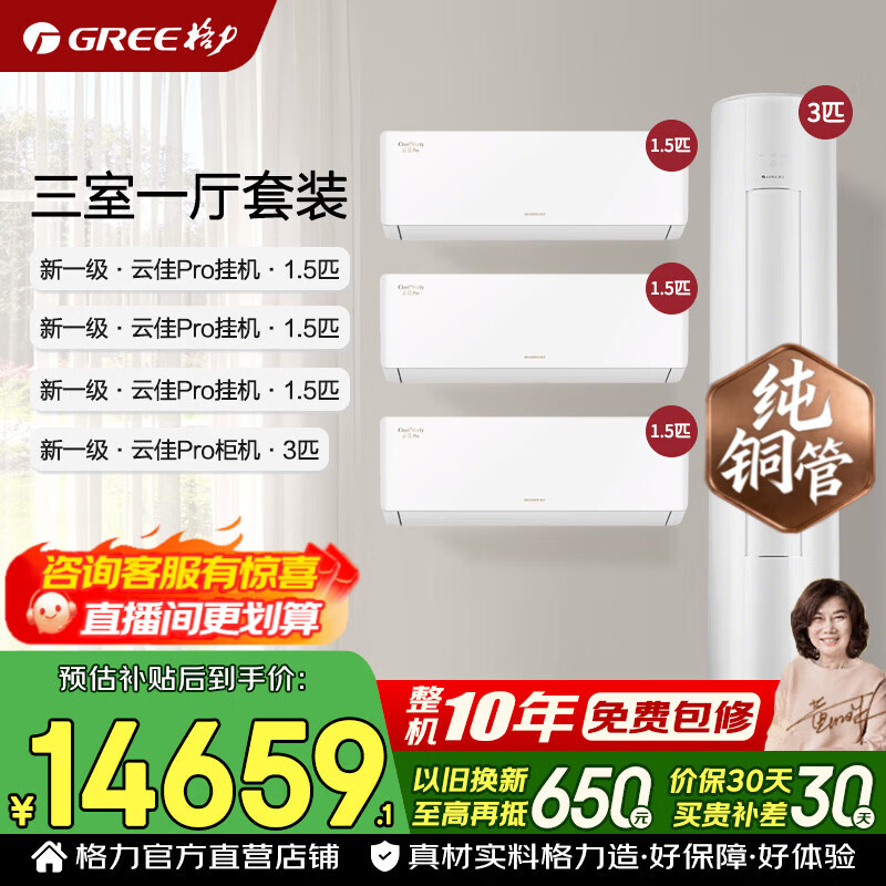格力空调套装 云佳pro 新一级能效 变频冷暖 纯铜管 节能省电 客厅立式柜机柜挂组合套装 家电国家补贴 【三室一厅】1.5匹云佳Pro*3+3匹云佳Pro