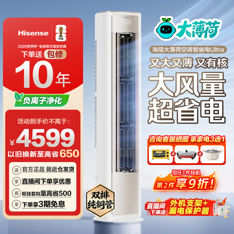 海信(Hisense)空调 智省电ultra 大薄荷 大3匹空调柜机 AI省电 速冷热大风量一级能效 换新补贴 立式E370Pro 大3匹一级能效