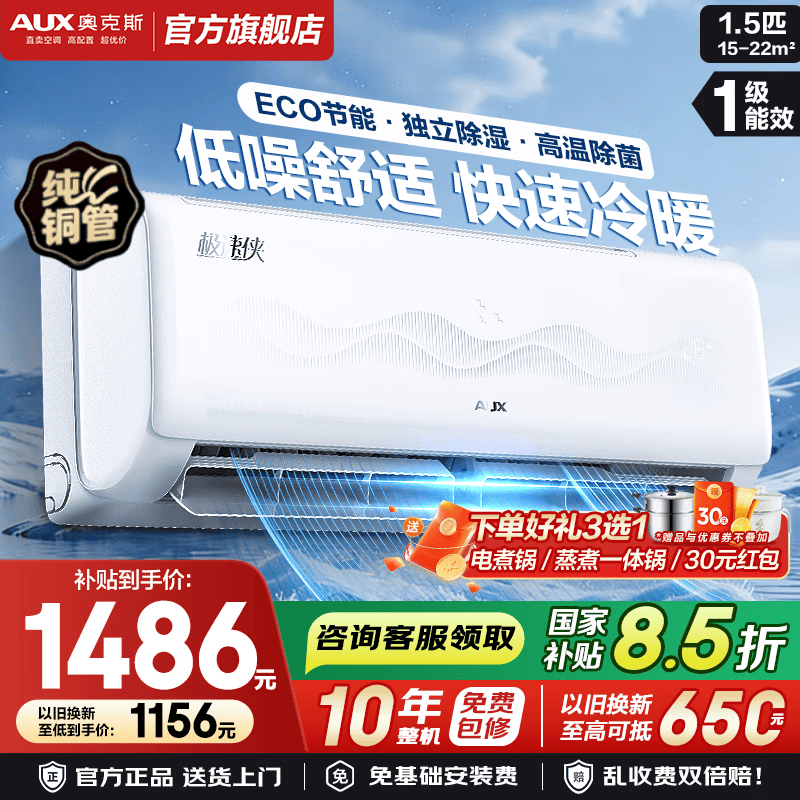 奥克斯(AUX)大1.5匹空调挂机大1匹省电侠Pro新一级能效变频冷暖 挂式卧室 铜管空调 以旧换新 大1匹一级能效省电侠 省电30%