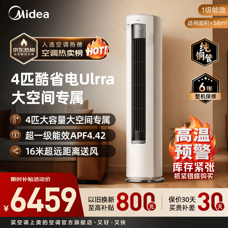 美的(Midea)酷省电Ultra立式空调2匹/3匹客厅立式柜机新一级能效节能省电 变频冷暖智能家用 以旧换新国家补贴 酷省电Ultra88大柜 4匹 大空间·客餐厅全覆盖