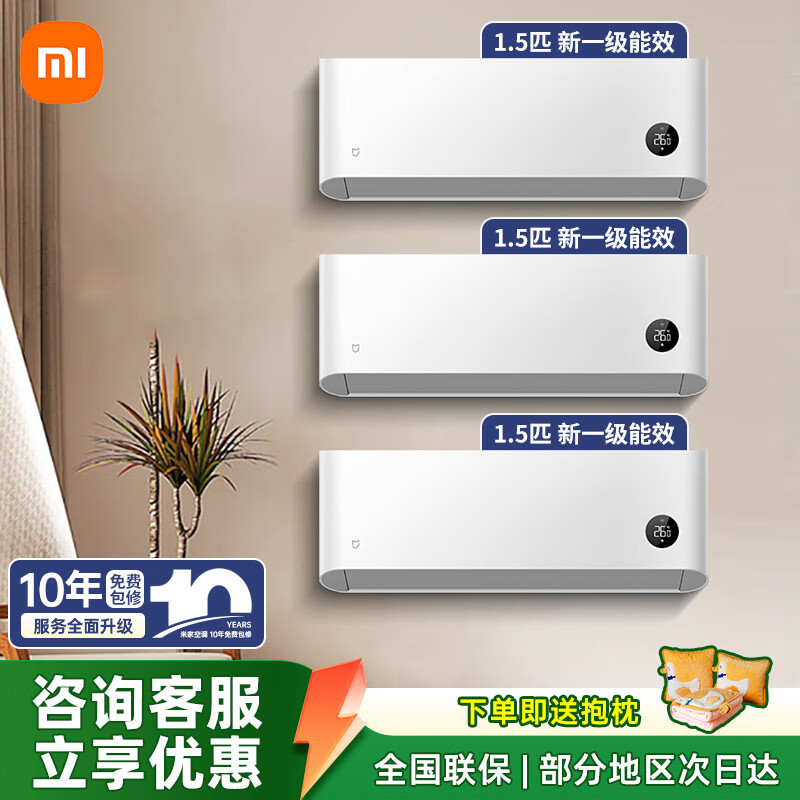 小米(MI)空调套装 巨省电 三室一厅 大1匹/1.5/2/3P 新一级能效空调柜机 智能调节变频冷暖壁挂式空调挂机 【三室】1.5匹挂机*3