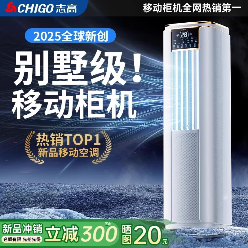 志高【升级大风量|可移动】移动空调单冷暖家用柜机压缩机制冷一体机无外机免安装立式空调 2.5匹单冷|旗舰新品轻音瞬冷