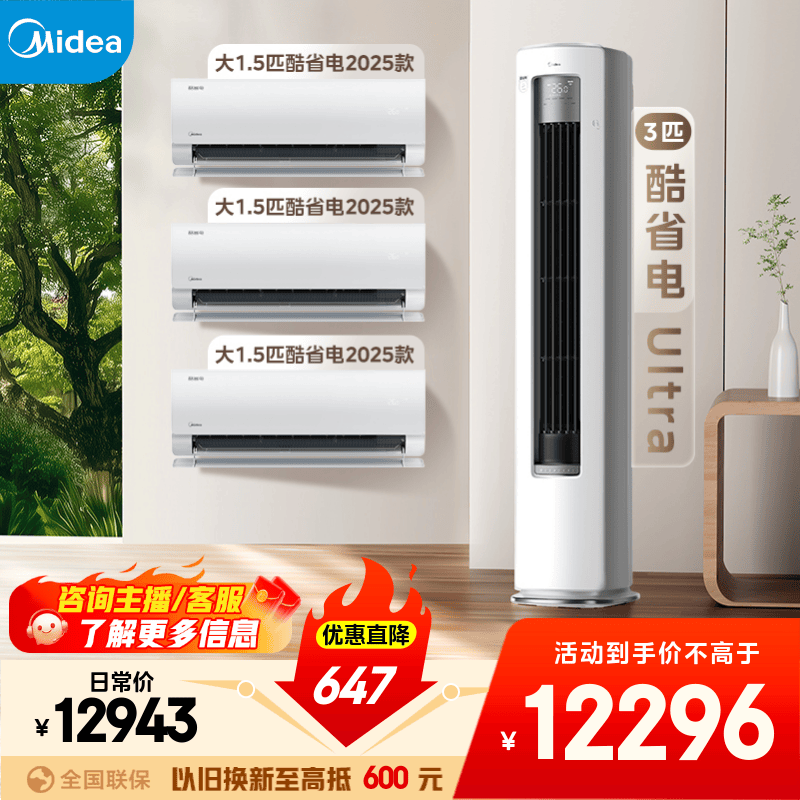 美的(Midea)空调套装 酷省电新款系列 挂机立式柜机新一级能效变频冷暖 家用节能套装 一套购齐 家电国家补贴 三室一厅(酷省电2025款+酷省电Ultra)