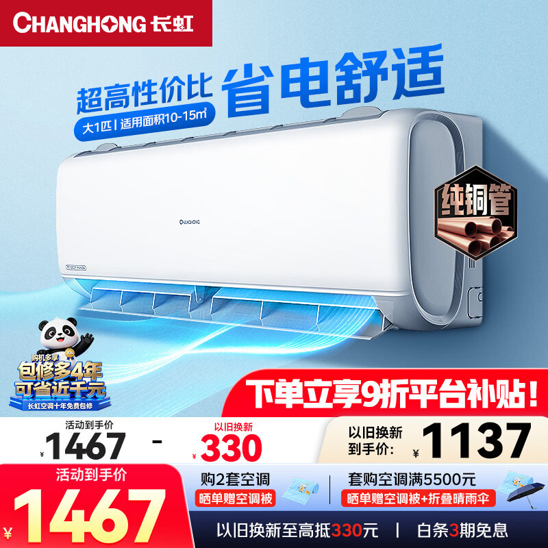 长虹空调 大1匹变频冷暖空调新一级能效省电 熊猫懒卧室挂机 国家补贴十年包修KFR-26GW/ZDCSW1+R1(SE) 熊猫懒 大1匹