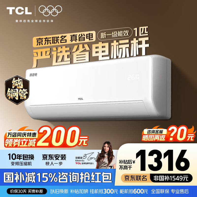 TCL空调1匹 真省电SE 空调挂机一级能效变频冷暖 家用卧室壁挂式节能空调 以旧换新补贴 京东联名真省电 1匹 真省电SE