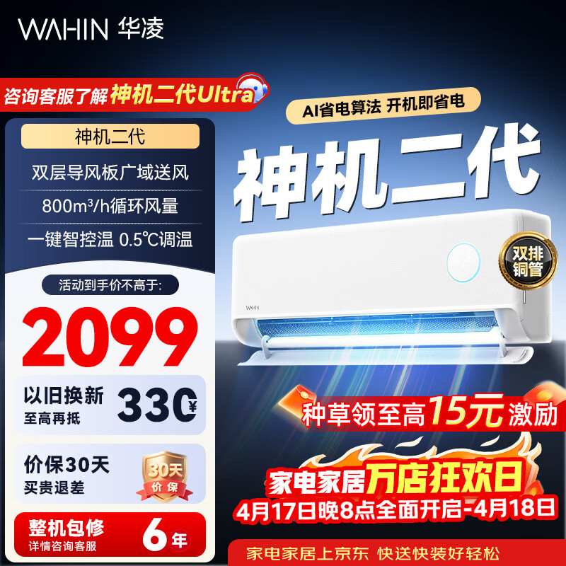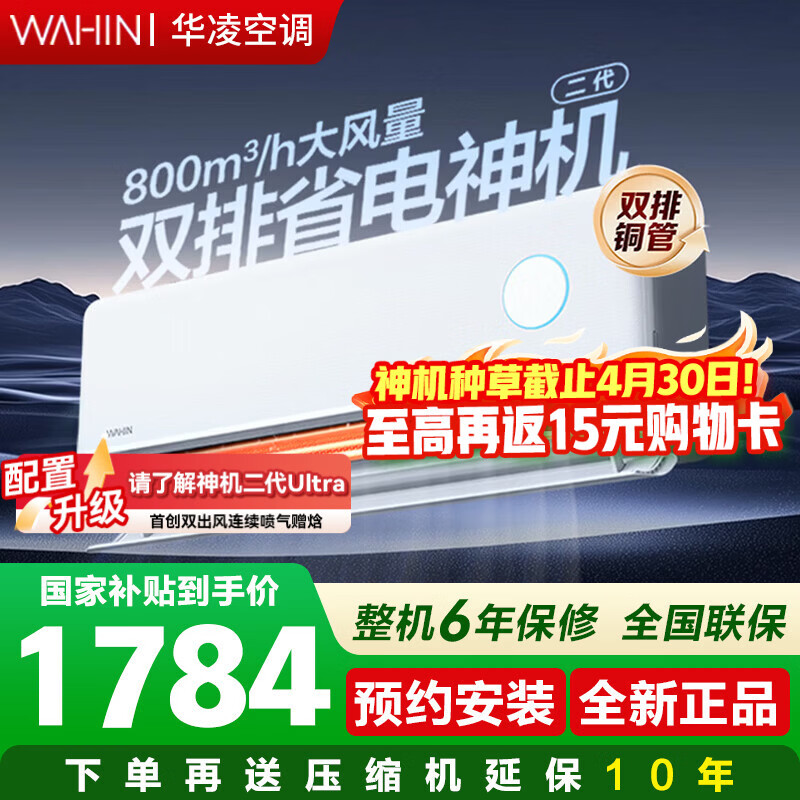 华凌空调挂机家用家电补贴空调 神机 大1.5匹 超一级能效 变频省电 以旧换新【双排铜管】 大1.5匹一级能效【神机二代】