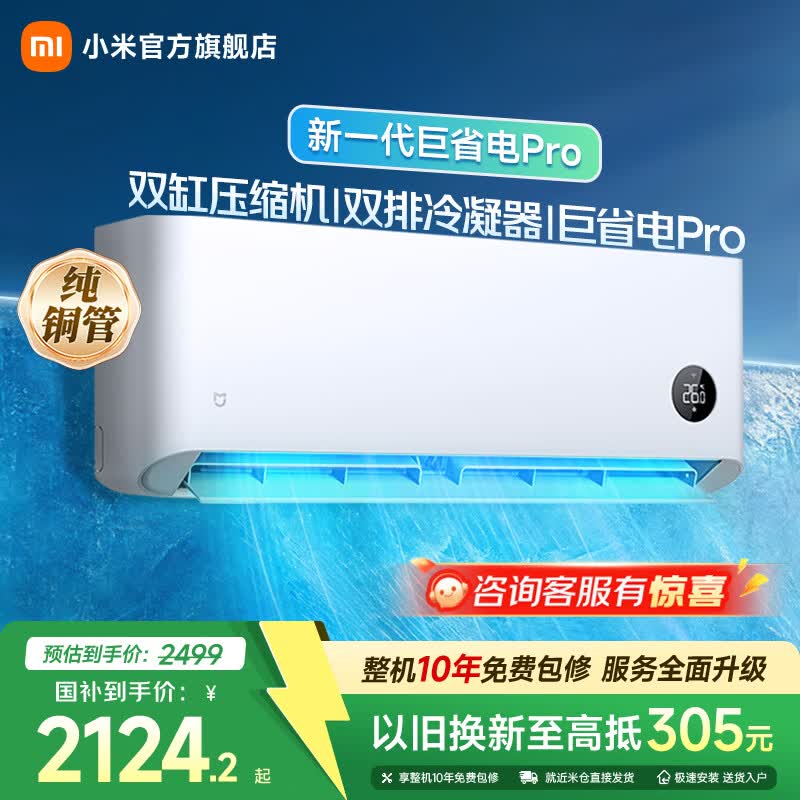 小米(MI)米家1.5匹 巨省电pro 超一级能效 变频冷暖 空调挂机 35GW-NA20/V1A1 国家补贴 巨省电pro 双排冷凝器 1.5匹 双缸压缩机