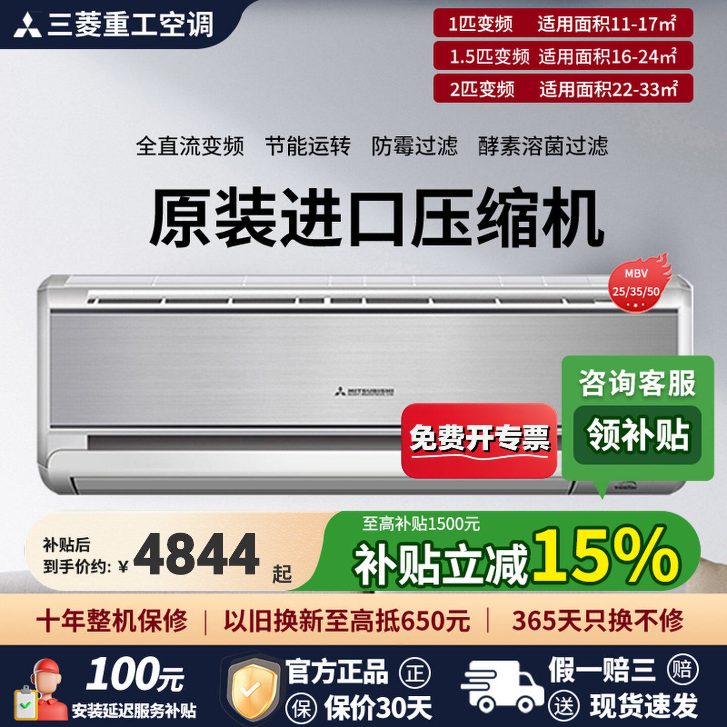 三菱重工空调家用1.5匹直流变频静音挂机空调官方正品冷暖两用