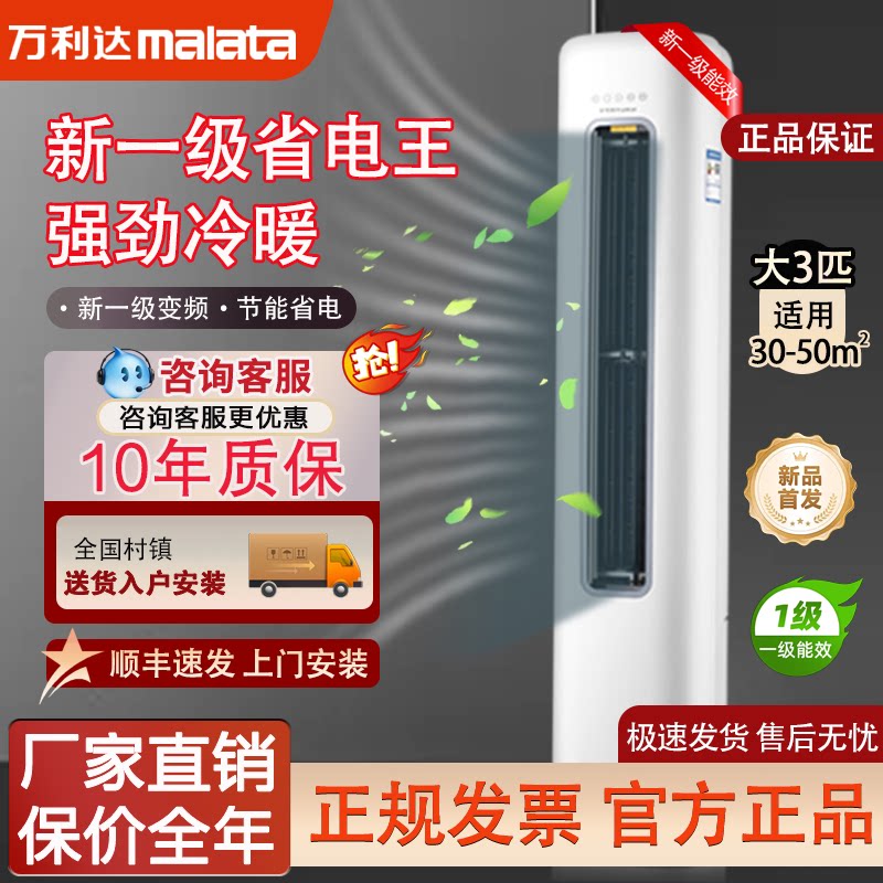 万利达家用客厅大3P匹圆柱立式柜机一级变频节能省店冷暖两用空调