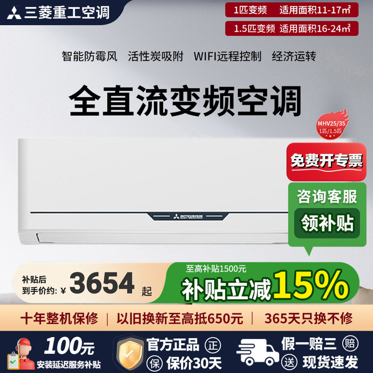 Mitsubishi/三菱重工空调1.5匹变频挂机冷暖两用WIFI空调官方正品