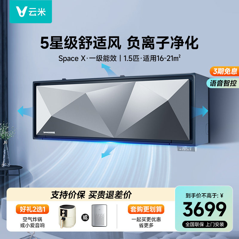 云米全域风空调家用冷暖智能语音一级能效省电1.5匹壁挂机SpaceX
