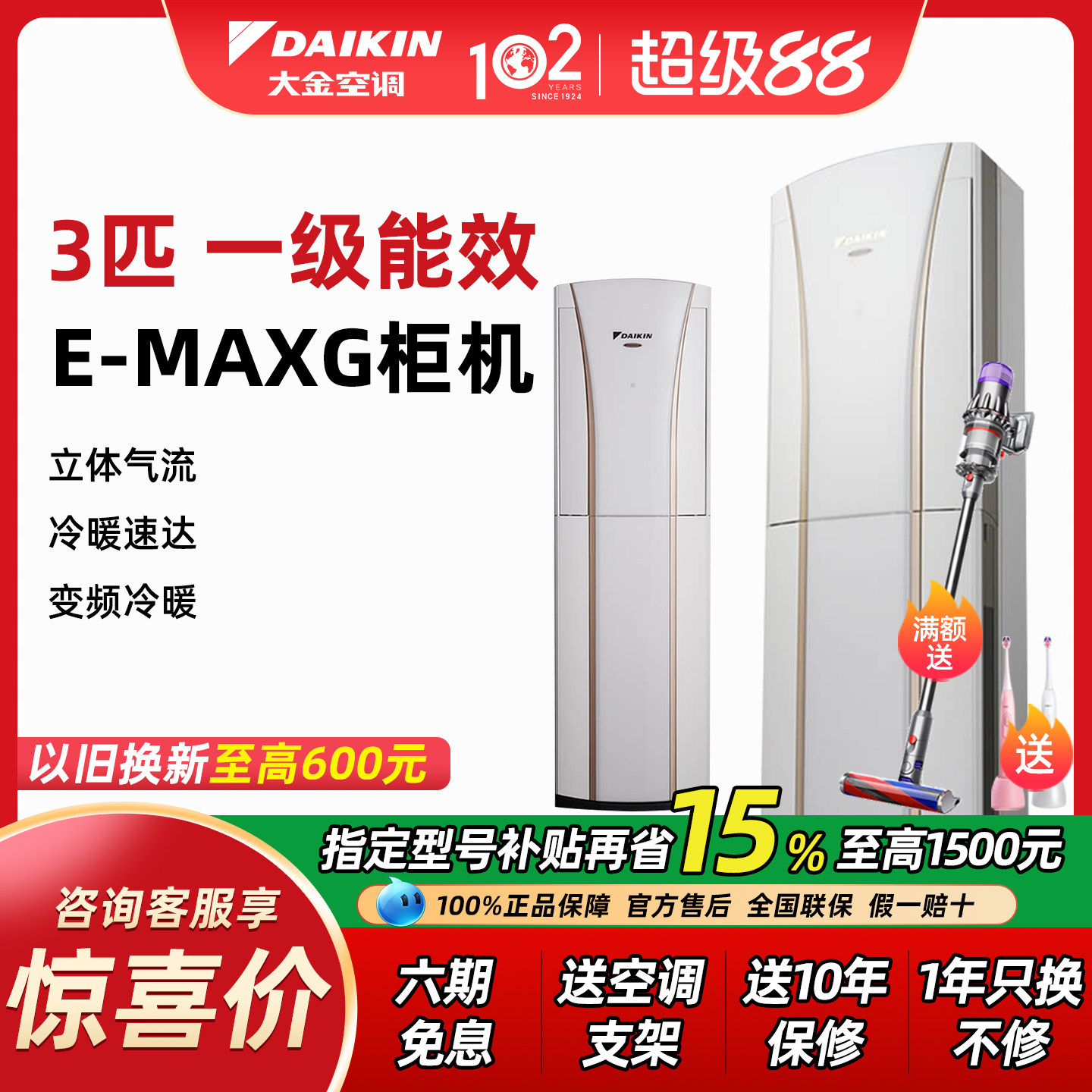 【15%补贴】大金空调变频3匹冷暖立柜式客厅柜机家用 FVXG172WC-W