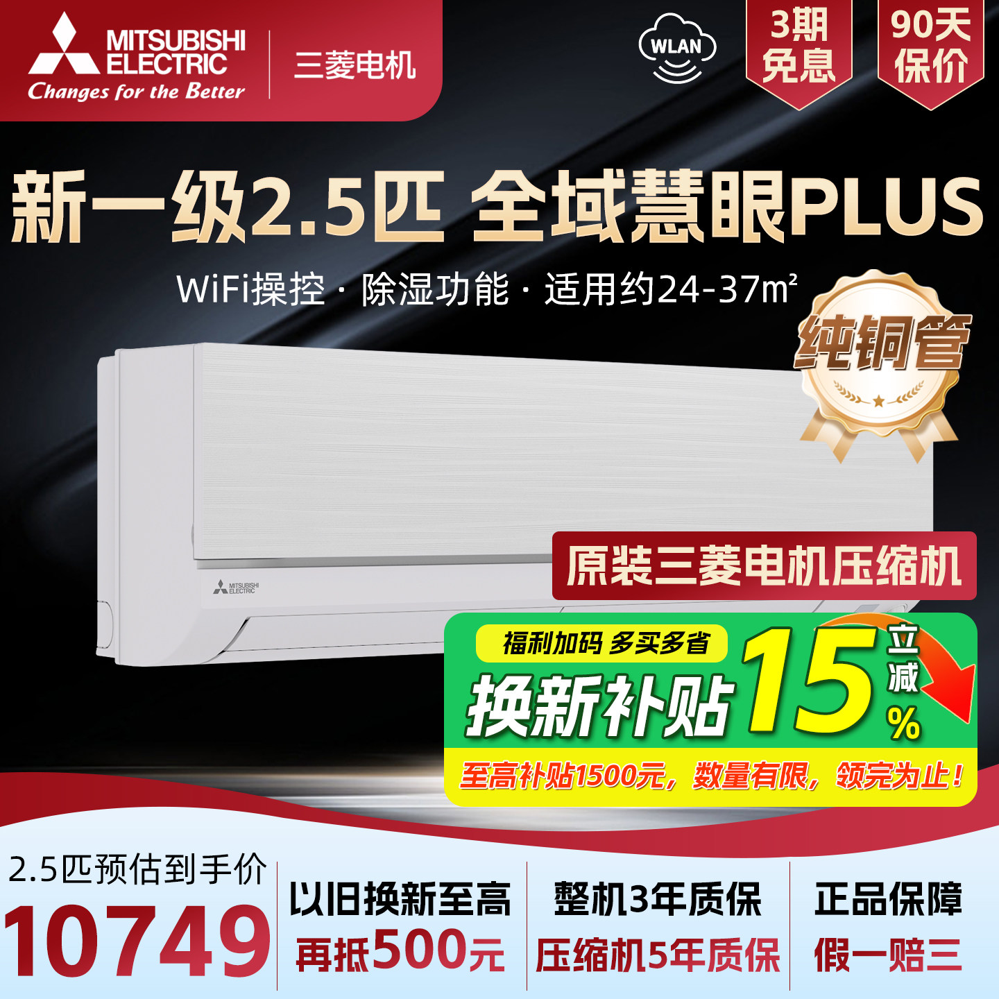 【补贴15%】三菱电机空调 WX20 一级2.5匹变频冷暖壁挂机家用静音