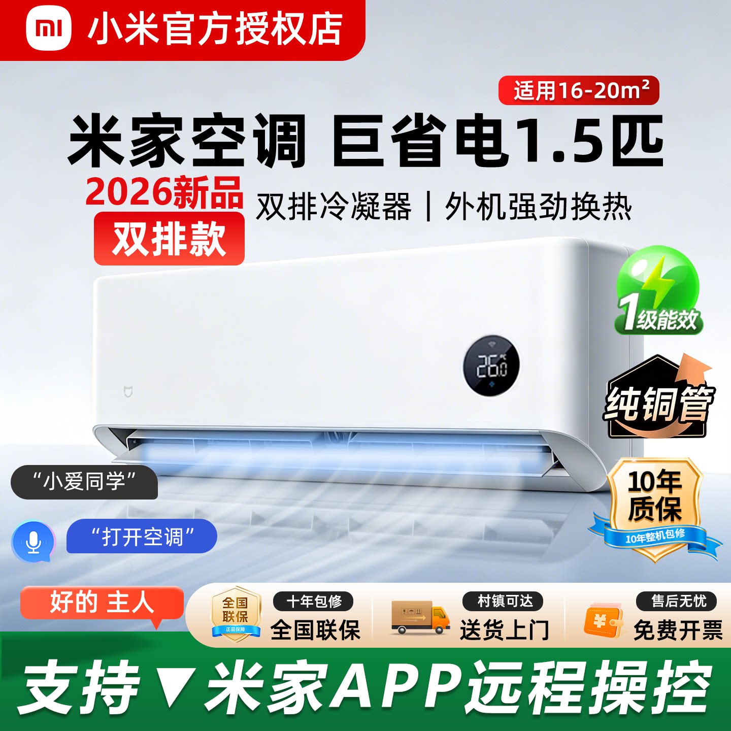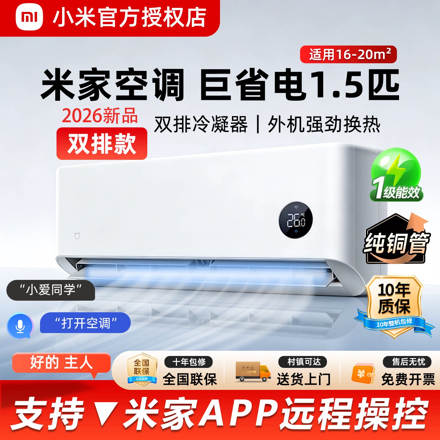 小米空调2026款 1.5匹巨省电 双排款 超一级能效2P变频冷暖自清洁