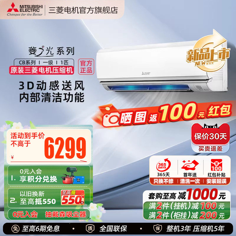 【新品】三菱电机空调MSZ-CB09VF一级变频1匹家用冷暖壁挂机官方