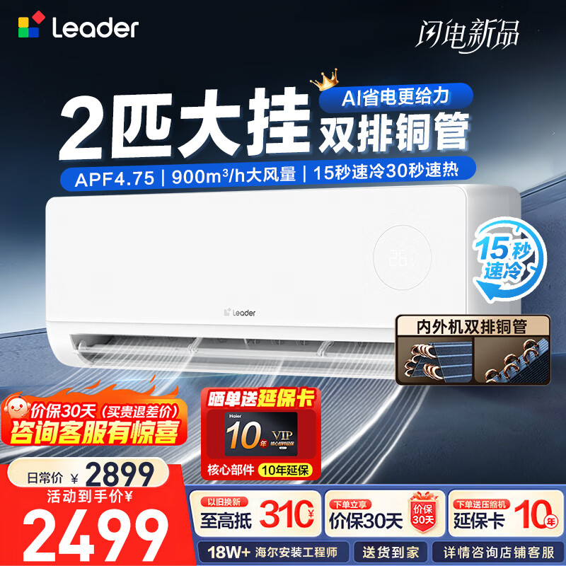 海尔(Haier)空调出品挂机2匹/3匹 双排纯铜管新一级能效变频家用快速冷暖自清洁壁挂式卧室空调 超省电 26年爆款新品+内外机大双排铜管 2匹