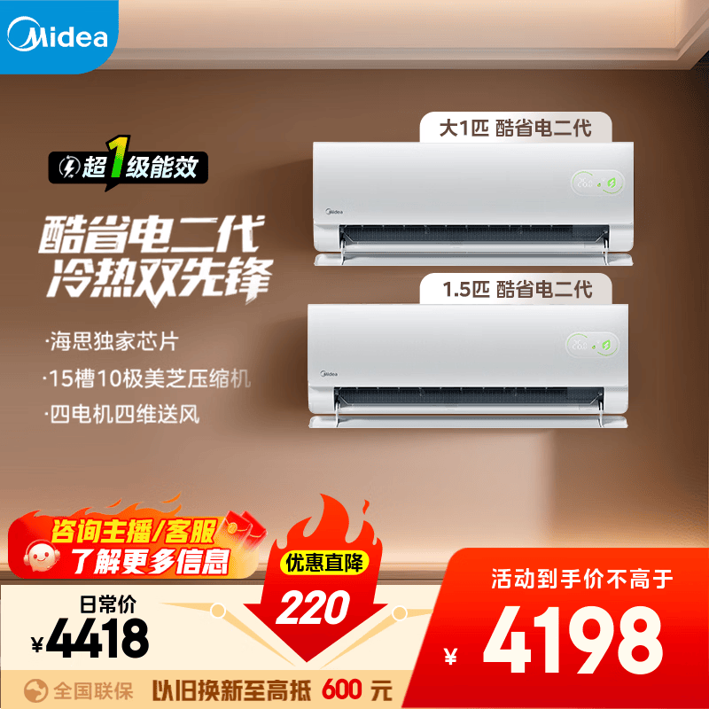 【26年新品】美的空调一级能效家用1.5匹变频冷暖挂机酷省电二代