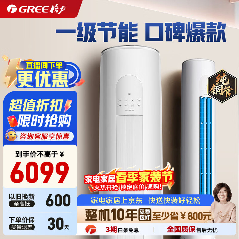 格力(GREE)天仪 新一级能效 变频冷暖 净菌自洁 出风口可拆洗 客厅圆柱立式柜机空调 以旧换新 天仪 3匹 一级能效柜机