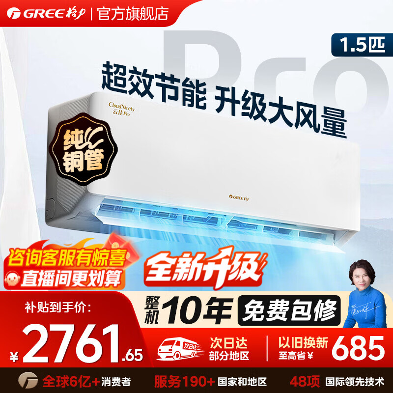 格力空调 云佳pro 1.5匹 新一级能效 变频冷暖 自清洁 家用卧室壁挂式空调挂机 家电国家补贴 以旧换新 1.5匹一级能效 云佳pro【节能省电】