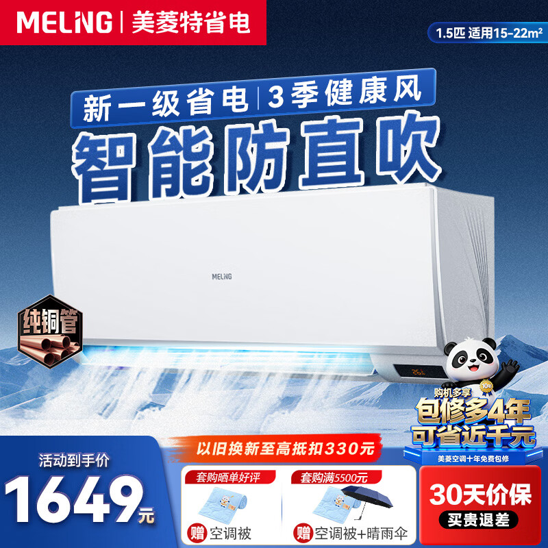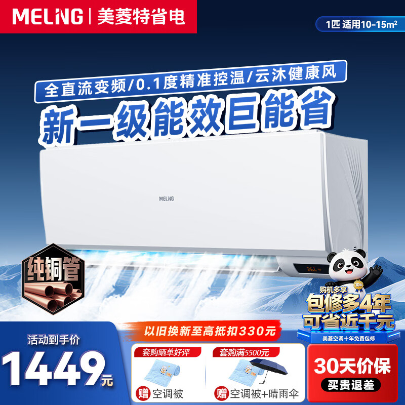 美菱雪糕 大1.5匹 新一级能效 家电国家补贴15% 以旧换新 变频冷暖卧室空调挂机 节能静音防直吹 特省电 大1.5匹 一级能效舒适风【10年包修】