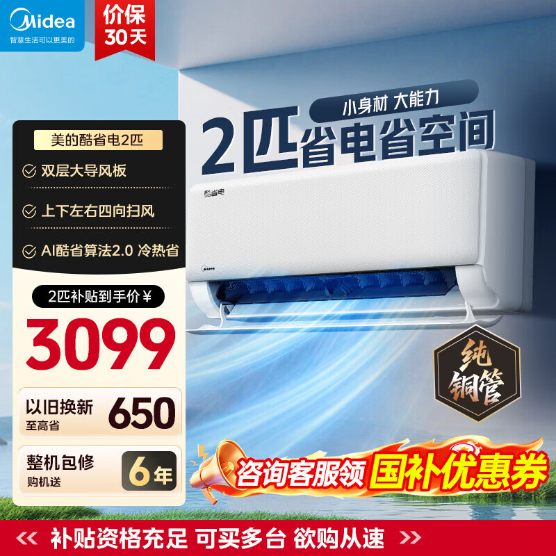 美的(Midea)酷省电二代 空调挂机 2匹大3匹 新一级能效 变频冷暖 节能省电 自清洁 壁挂式空调挂机性价比 酷省电 2匹 省电28% 一级能效